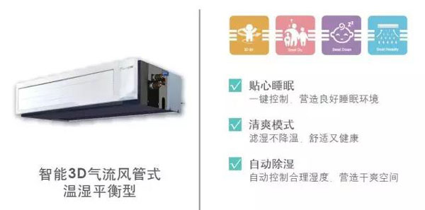 大金全效家用中央空調(diào)就有一檔睡眠模式,通過(guò)溫濕平衡的功能,來(lái)調(diào)整室內(nèi)的溫濕度。