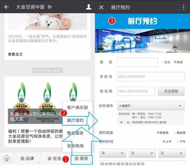 在線預(yù)約大金展廳,按照圖示步驟進(jìn)行在線預(yù)約。