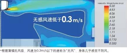 無感:向上送出的氣流,使室內(nèi)快速到達所需溫度的同時避免直吹人體的不適感,在人員活動區(qū)域形成大面積的無感區(qū)域。