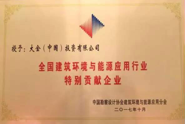 全國建筑環(huán)境與能源應(yīng)用行業(yè)特別貢獻企業(yè)