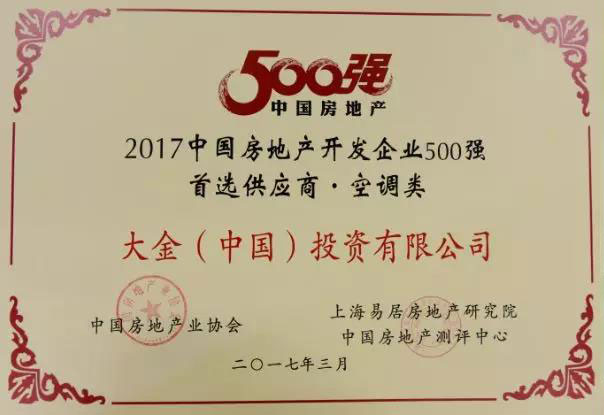 榮膺“中國房地產(chǎn)開發(fā)企業(yè)500強首選供應(yīng)商?空調(diào)類”桂冠
